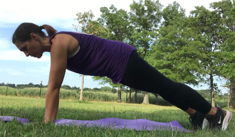 A more advanced stretch and strength building exercise. Get down on your mat and place your hands on the floor with straight arms, directly underneath your shoulders. Your hands should be extended and your body lengthened. Tuck your tailbone and ensure you engage your arms, legs, and abs to prevent your spine from arching toward the mat. Tuck your toes under and lift your knees, so that your body forms a straight line keeping your eye gaze looking toward your mat. You can modify this by bending your knees and placing your elbows down on the Mat, keeping your core engaged and back straight avoiding arching your back. Holding your plank for 20 to 30 seconds, building up to 1 minute or as longer as you can. This tones all of the core muscles of the body, including the abdomen, chest, and lower back.